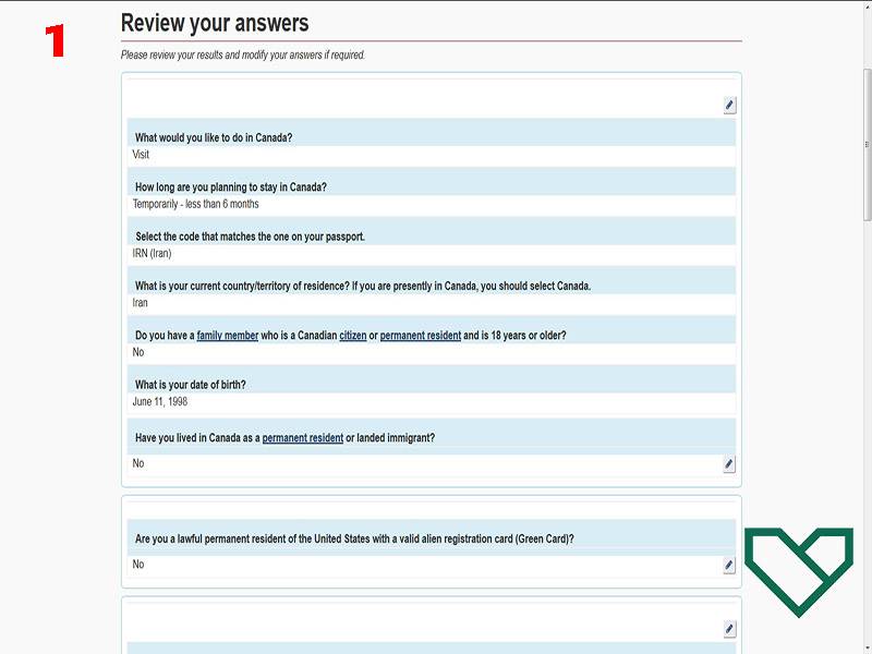 در این مرحله، باید به سوالات مطرح شده توسط سفارت کانادا پاسخ دهید تا مشخص شود که آیا واجد شرایط دریافت ویزای توریستی چندبار ورود کانادا هستید یا خیر.